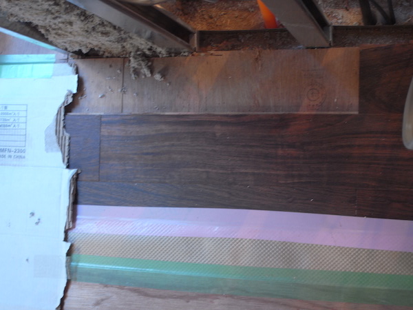 床に養生がはられていたが、フローリングはほぼ貼られている状況のようだ。
