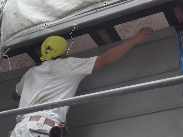 外壁が貼られ始めた。昭和電工のラムダ